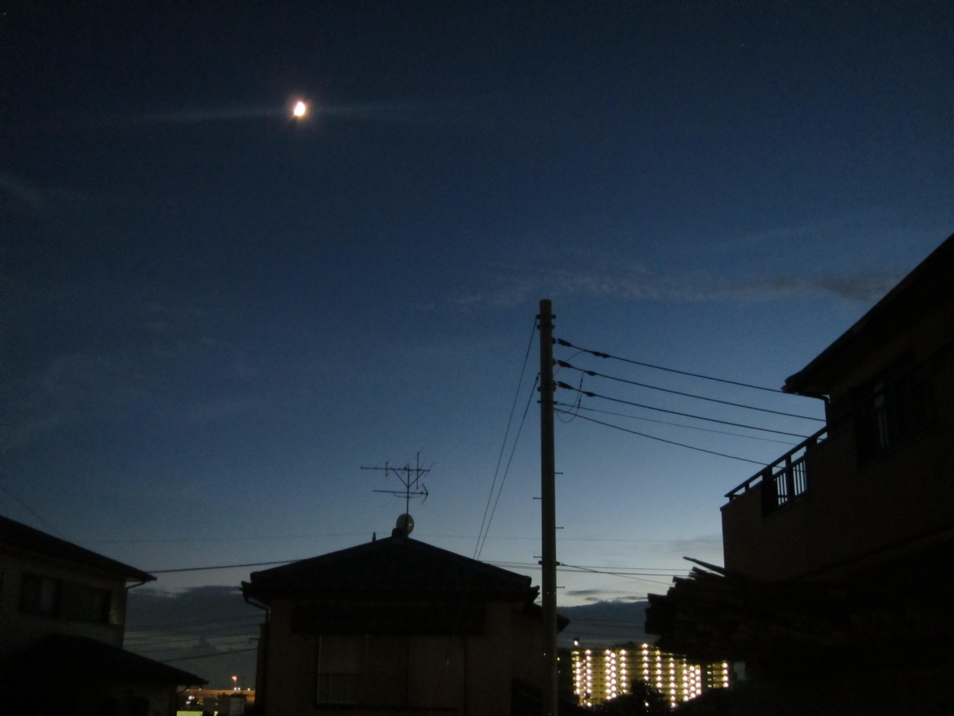 地球は青いの? 西の空に三日月があって、 その周りの空の青がとってもきれいだったので・・・ 透き通った藍色のような、、 なんか良いことありそうな、、、 と勝手に思ってみていましたー♪ 昼間はとっても暑かったけど この時間風も何となく澄んでいるような気が・・・ 明日もがんばろー!!