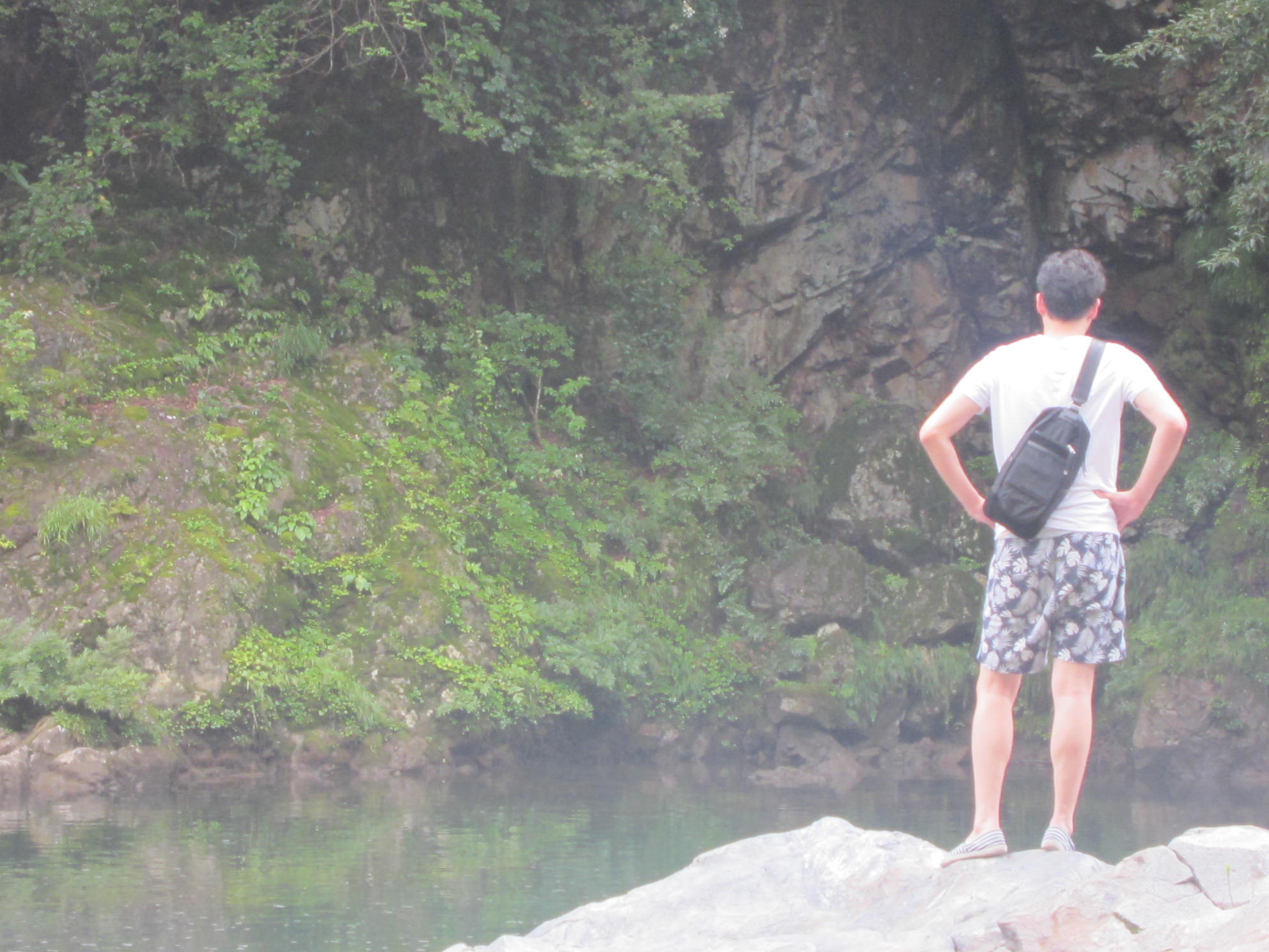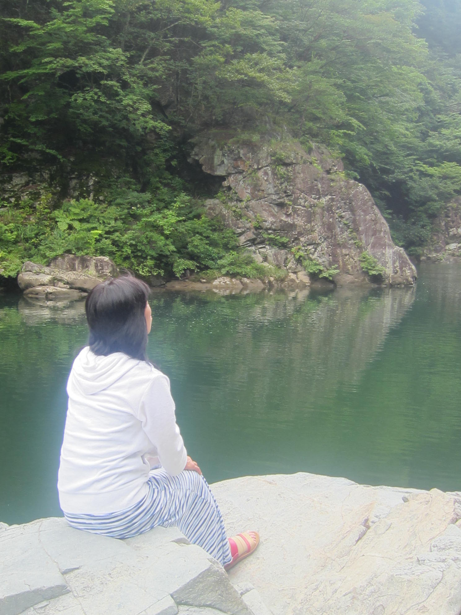 岩畳に座り、緑の景色をのんびりと楽しむ(=^・^=)♪