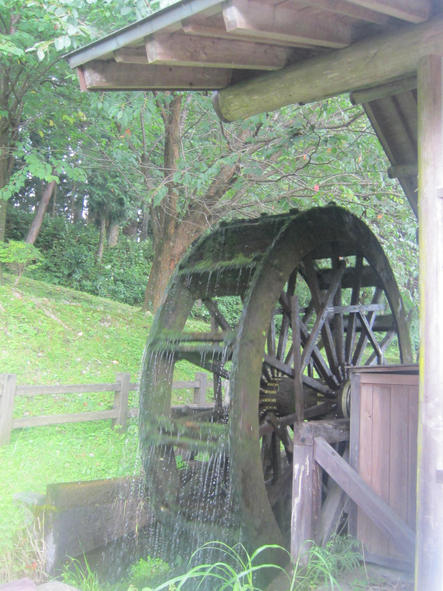 かつては米つき、粉ひきなども使われた、数多くの水車。