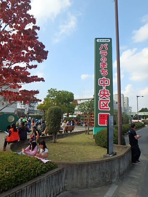 区民祭 開催中\(^o^)/♪ 【バラのまち 中央区】 年に1度の区民祭は毎年大盛り上がり♪ 特に今年は暑いくらいの陽気に誘われて、遊びに行って来ました♪ 区民以外でも気軽に楽しめ、催し物もたくさん♪ ※中央区自慢の「バラ」を見たい方は与野公園へどうぞ♪ 170種3000株のバラが咲き乱れます! 秋バラの時期なんですよ♪ ↓こちらのゲートが目印です↓ 100件を超える露店は活気が溢れていて見所満載♪ 開催日:11月7日(土)、11月8日(日) 場 所:さいたま市中央区区役所周辺 交 通:埼京線「与野本町駅」徒歩3分