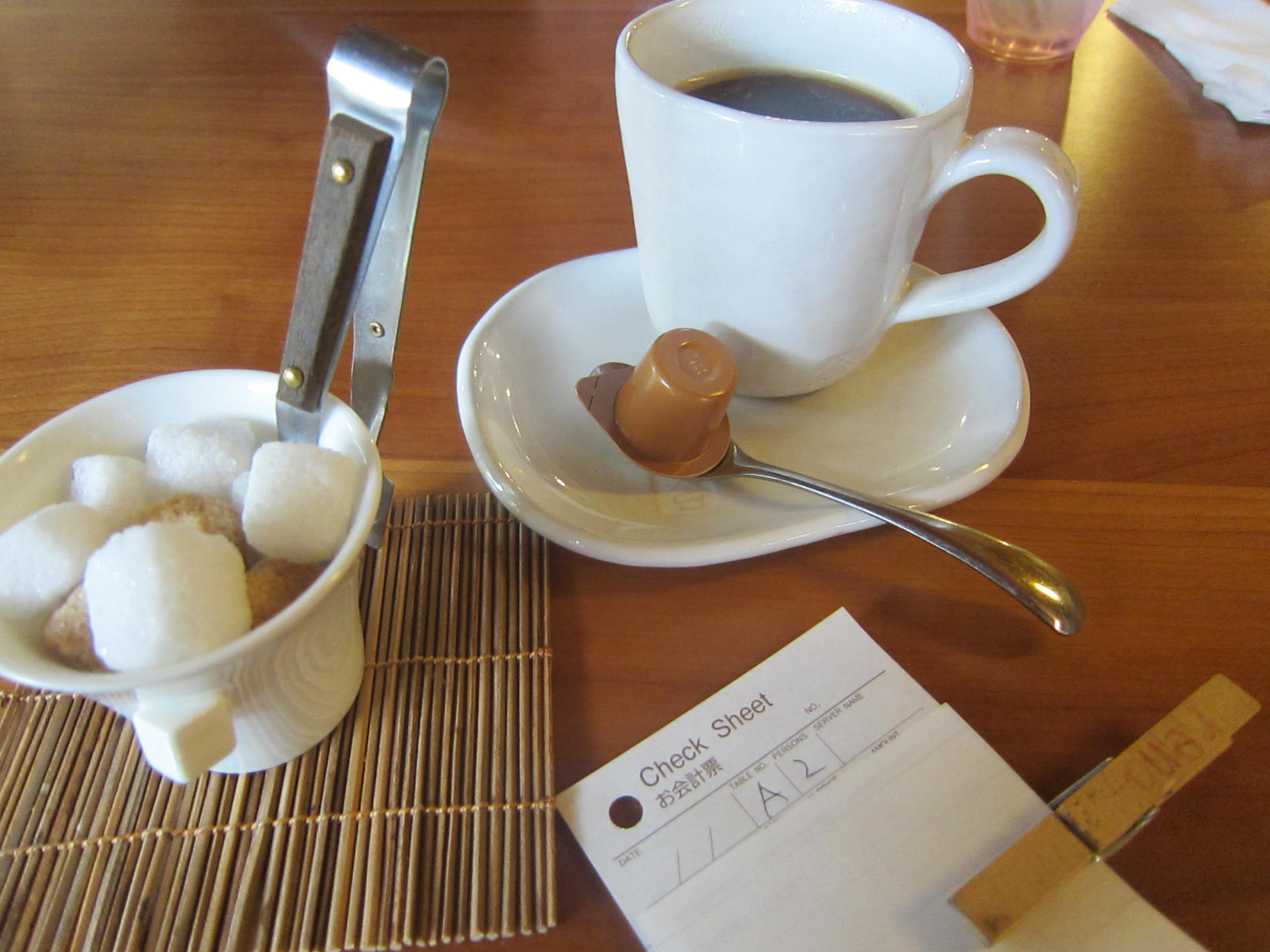 くつろぎチェアーの窓側席でテラス席を眺めながらいただいた炭焼き珈琲