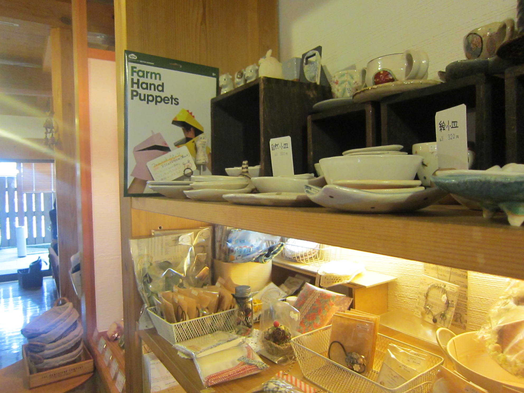 ハンドメイドの雑貨や手造りのクッキーなどお菓子が並べられています
