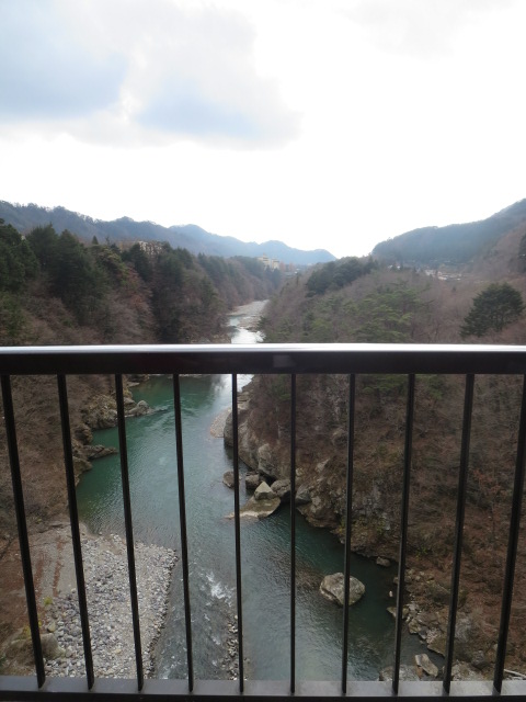 高さ約40mの橋上からは、大岩を縫うように流れる