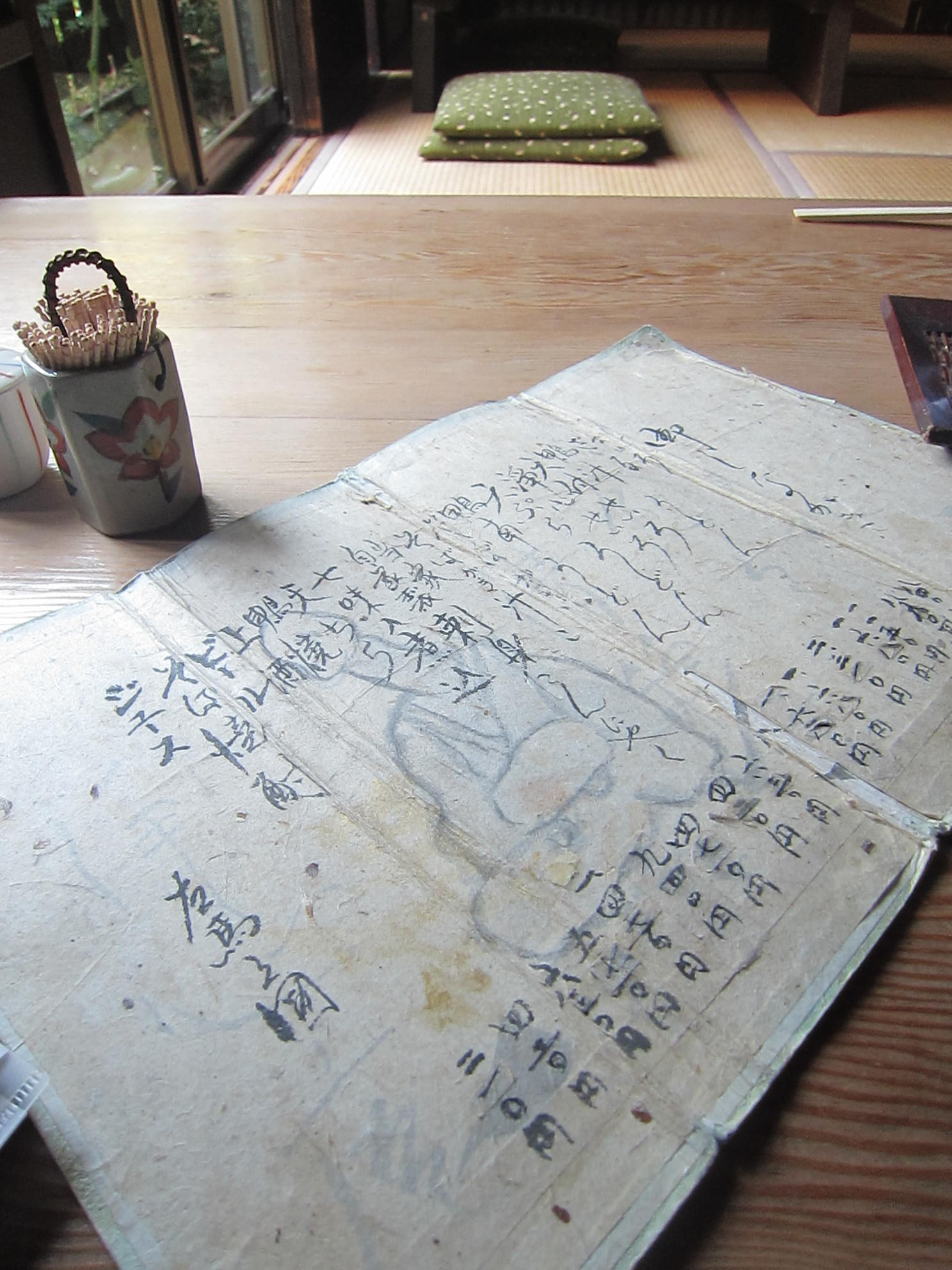 柱に貼られたご主人書きのメッセージがおもしろい、