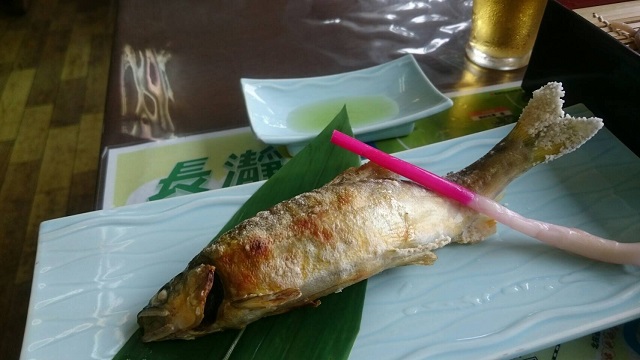 アユの塩焼き お腹からガブリ!