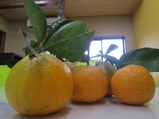 もぎたてみかん お庭の芝がすこしづつ色を失い始めて お庭がさみしくなってきたな~ みかんは元気! 目に鮮やかなミカン色♪ 頂きました(⋈◍>◡<◍)。✧♡ 良い香り~♬ うんま~いO(≧▽≦)O 甘酸っぱくてジューシー!! 果肉がぎっしり詰まってて 口の中いっぱいに広がるビタミン♬ 酸っぱいけど少し甘さもあるみかんが大好きです!! しかしお店にあるみかんは甘いものばかり…。 お店の中もミカンの香り もぎたてフレッシュなみかん みんなで美味しく頂きました (。・ω・。)ノ♡