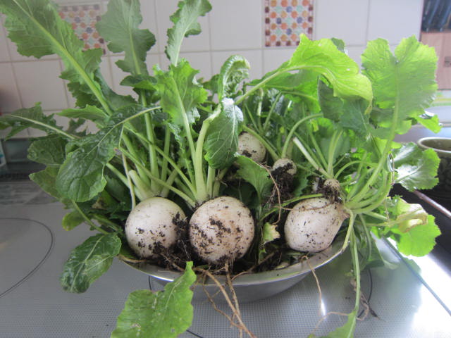 カブ(*´з`) 久しぶりの青空♪ 気温は低いけど気持ちいいですね~! 日課の水やり お花も元気(⋈◍>◡<◍)。✧♡ お庭で取れたカブ 夕飯の食材に♪ 葉っぱも美味しいですよね~! 何にしよっかな(*´з`)