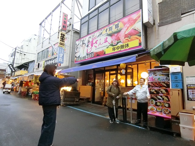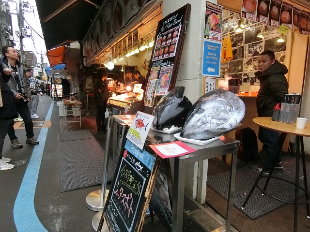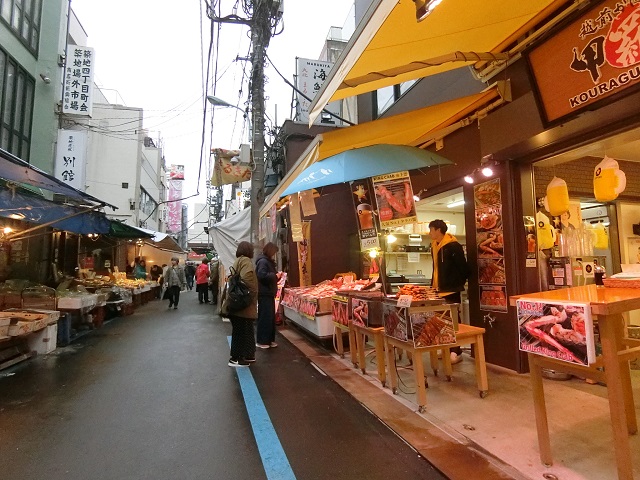 築地場外市場 AM5時集合、、、 寝坊した~(;´༎ຶД༎ຶ`) 待っててくれたよ<(_ _*)> 「おなかすいた!」 ※寝坊して待たせたんだった・・・スンマセン お決まりポーズ 路地中へTekuteku ムフフ♡ (⋈◍>◡<◍)。✧♡ 旨い・うますぎる♪ 食べ歩き! これで半身、プリップリのデカエビちゃん! おみやげ♪ お買い物も! お腹いっぱい、楽しかった(*´з`) まだAM9時・・・ 会社に帰りましょ(★`・ω・)ゞラジャ