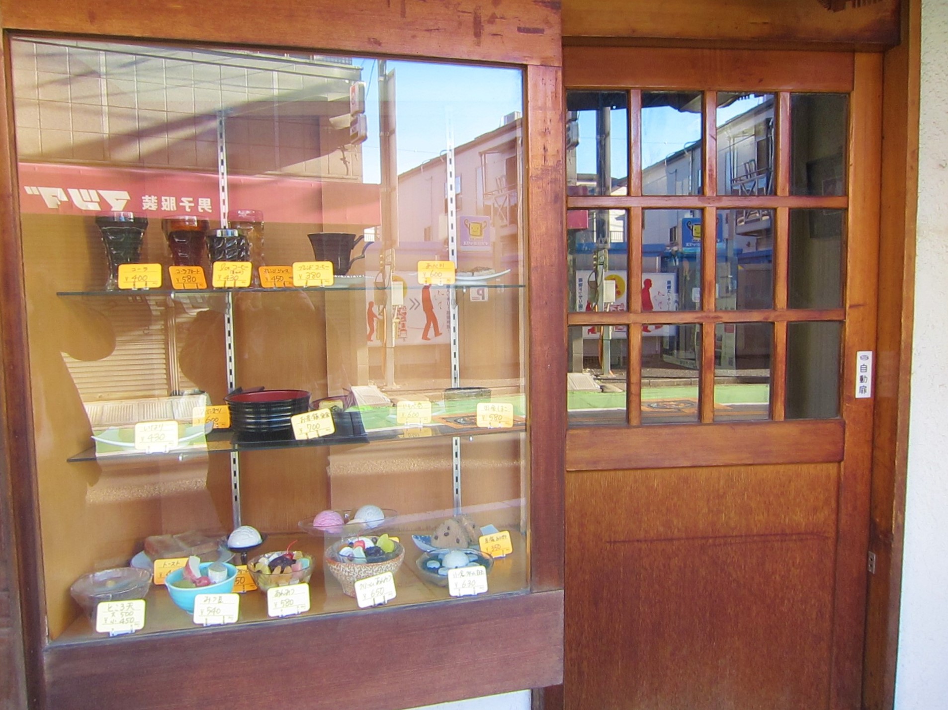 お店の前には小さなショーケースがあり
