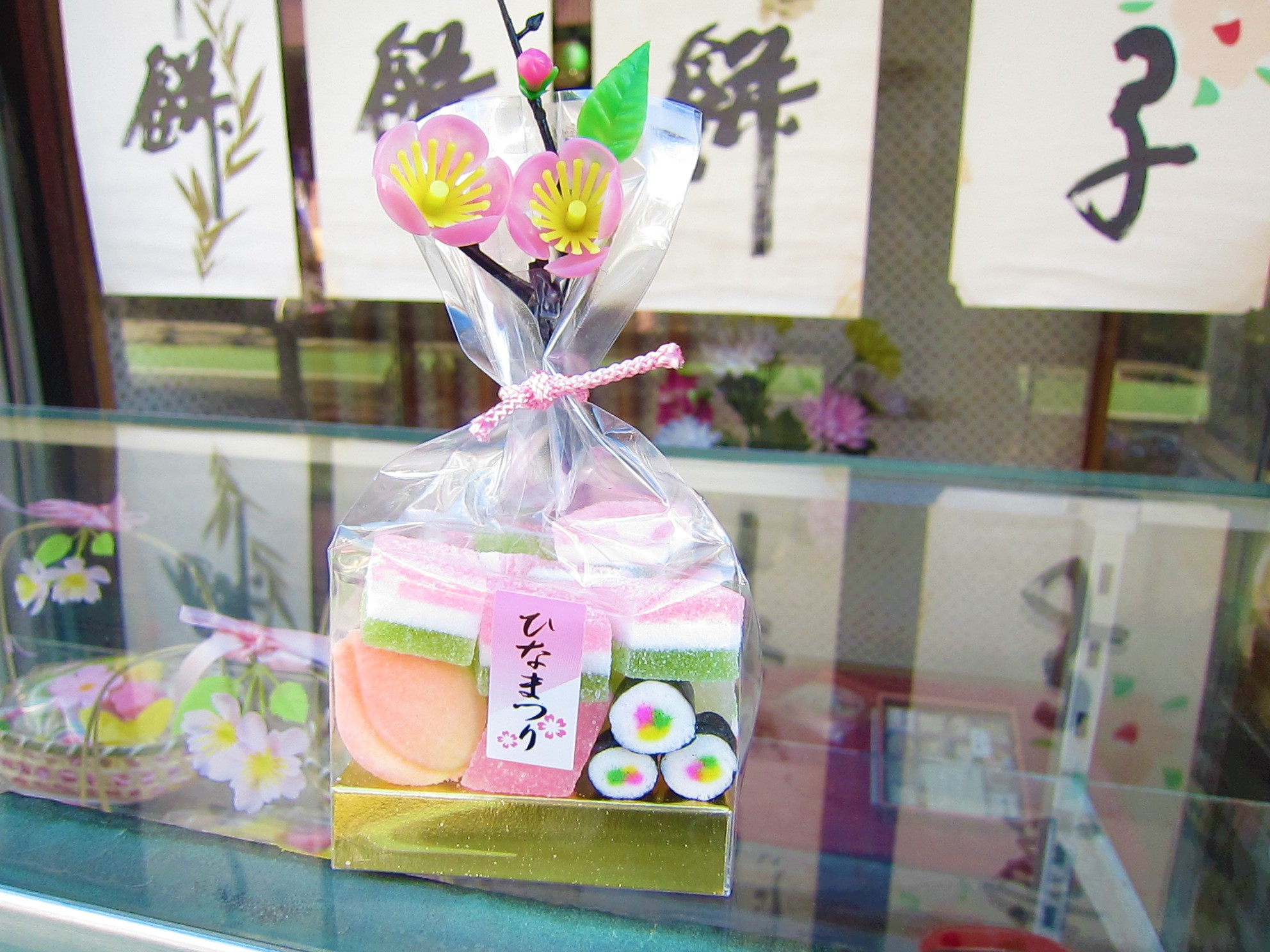 ショーケースの左側にはかわいらしいひなまつりの