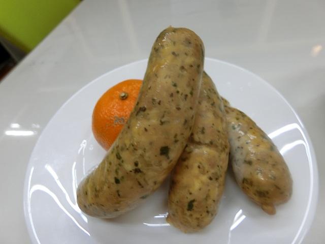 手作りソーセージ③ 噛むと肉汁がジュワっと溢れる「手作りソーセージ」! パクっと一口でビールがぐいぐい進みます (⋈◍>◡<◍)。✧♡ 中の緑は「パセリ」ちゃん 彩には欠かせないのに、 食後のお皿に残されてしまう・・・ そんなパセリちゃんもソーセージでは主役を支える女房役♪ 良い仕事してます(*’▽’) 桜のチップでスモークされたソーセージと、 デザートにはフルーツを! こんなひと時を楽しむ hi-Ⅼohasなのでした(*’▽’) すっかり秋の空気になりましたね。 蚊取り線香もまた来年! ありがとうね!