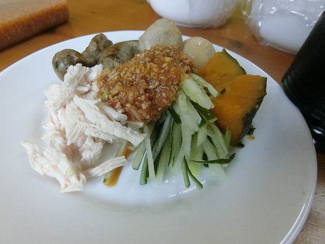 棒棒鶏&朝採れキュウリ♪ 今年も大きなキュウリができたよ! (⋈◍>◡<◍)。✧♡ Ⅼohasシェフの出番! ササっと手作り「棒棒鶏ソース!」 ネギ・にんにく・しょうが・豆板醤・みそ等々 いつもの絶品フランクフルトも♪ ミョウガと酢の物にしてみた・・・。 健康的なお昼ごはんになりました(*´з`) デカっ・・・