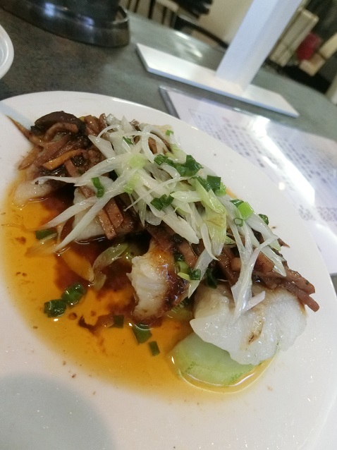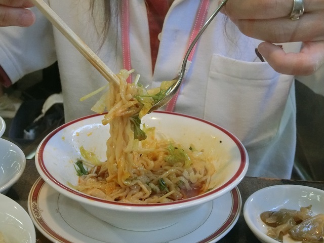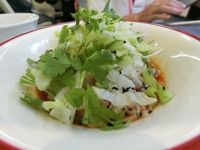 ぶ厚い蒸し鶏が何枚も入った酸辣湯麵(冷)