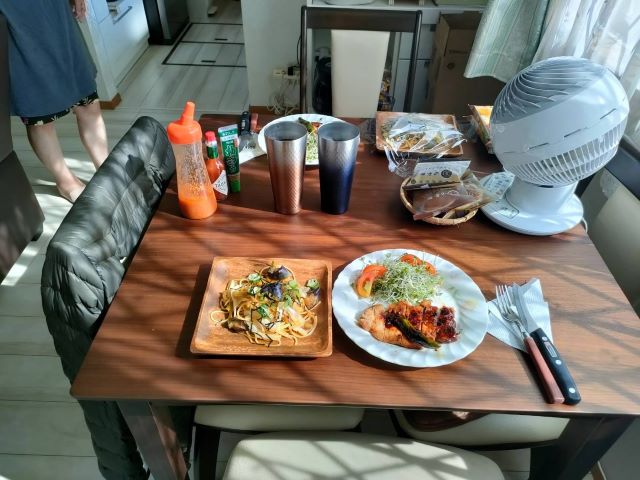丸々太ったナスの素揚げパスタ♪
