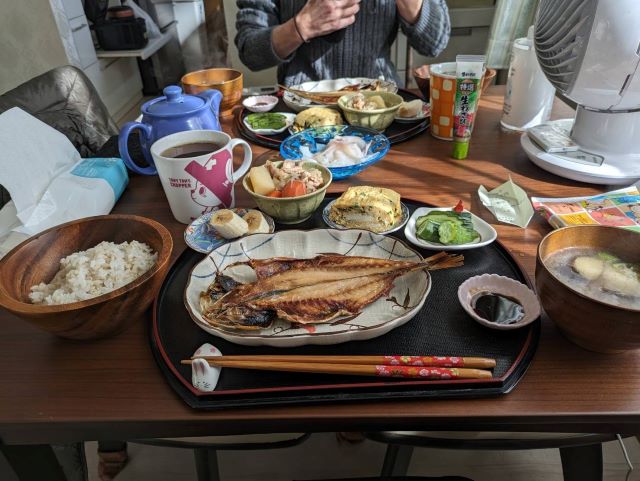 朝ごはん♪ 定休日♪ 朝ごはんを楽しむ日! 和食のリクエスト この間行ってきた海の市場で仕入れた新鮮魚類! ◇アジの干物&イカのお刺身 ◇肉じゃが、卵焼き ぬか漬けはちょっと漬けすぎ・・・(>_<) お味噌汁は揚げ茄子とオクラ(*´з`) 今日もお腹いっぱいだね!!