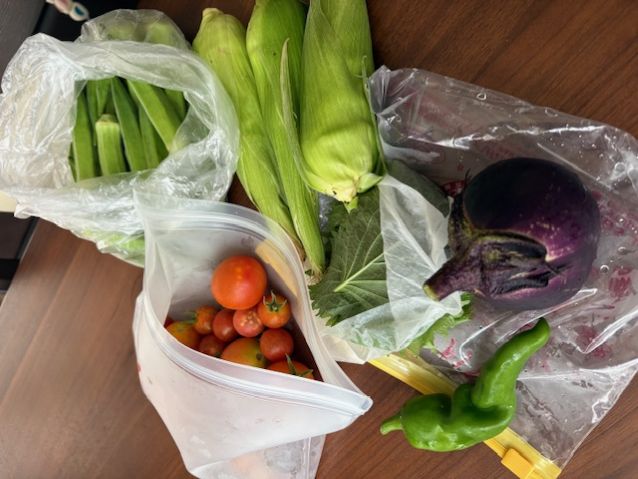 今朝♪ 涼しい朝、 助かる~(❁´◡`❁) 気温が上がらないうちに 畑の収穫&水まき ◇指宿のオクラ(毎年楽しみな頂き物♪) ◇とうもろこし ◇大葉&万願寺唐辛子 ◇ナス&トマト お野菜たっぷり朝ごはん 「ぶっかけそば」 簡単ごはんでお腹いっぱい╰(*°▽°*)╯